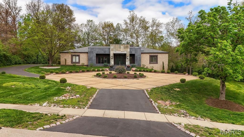 Architecturally striking contemporary home by Arthur Sitzwohl, crafted for effortless luxury living. Expansive walls of glass flood the home with natural light and create a seamless connection to the slate patio and saltwater pool. Thoughtfully curated with art lighting and gallery-like spaces to showcase a prized collection, every detail elevates the everyday. A sunken living room with a gas fireplace and an elegant dining area with custom built-ins and striking Neolith surfaces set the tone for sophisticated entertaining. The chef's kitchen features Brazilian quartzite countertops, Wolf and Sub-Zero appliances, and white oak flooring throughout much of the main level. The reimagined primary suite is a serene retreat with a sitting room or office, a stunning spa-inspired bath, a custom walk-in closet, and a private deck with a hot tub overlooking a tranquil waterfall. The east wing offers an en-suite bedroom, two additional bedrooms, and a full bath. Renovated in 2023, the walk-out lower level includes built-ins, a full bath, and generous storage, opening directly to the backyard and pool-creating the ultimate setting for relaxation or entertaining. A rare opportunity to own a home in Ladue Schools where design, light, and lifestyle come together-an experience you won't want to miss. Pool is now open!