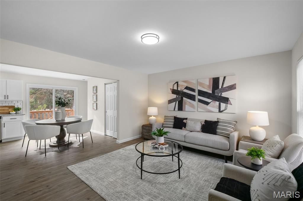 Updated 3-Bedroom Ranch with Large Deck and Basement Space in Fenton!Welcome to 1320 Fenton Hills Road in Fenton, a well-maintained 3-bedroom, 2-bath ranch home offering comfortable main-level living with outdoor space and additional room to expand.The home features approximately 1,066 square feet on the main level, plus a full unfinished basement that provides storage or potential for additional living space.The open living, dining, and kitchen layout creates a connected flow for everyday living and gatherings. Natural light fills the main living area, while updated flooring and lighting add a fresh, modern feel.The kitchen includes white shaker cabinets, granite countertops, subway tile backsplash, stainless-steel appliances, and a gas range, providing a functional and updated space for cooking and entertaining.Sliding doors lead to a multi-level deck overlooking a partially fenced backyard with mature trees, offering outdoor space for relaxing, grilling, or enjoying quiet mornings.Additional highlights include: Three bedrooms on the main level Two full bathrooms Full unfinished basement for storage or future finishing Multi-level deck with backyard viewsRecent maintenance and improvements include: New furnace New water heater with expansion tank HVAC servicing Driveway sealing Landscaping updatesConveniently located near parks, retail and dining at Gravois Bluffs, and commuter routes including Highway 141 and Highway 30, this property provides access to everyday amenities throughout the Fenton area.If you're looking for a move-in ready ranch with an updated kitchen, outdoor living space, and basement potential, this home is ready to explore.