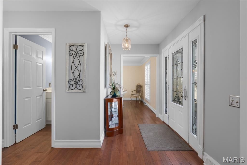 Beautifully updated and impeccably maintained, this Royal Acres gem offers timeless style, thoughtful upgrades, and exceptional space in the heart of Des Peres, within the award-winning Parkway School District.Hardwood floors grace the entire main level, complemented by elegant formal living and dining rooms featuring gorgeous white shutters. The updated kitchen and baths blend modern finishes with everyday functionality, while a large main-floor laundry adds rare convenience.Upstairs, five generously sized bedrooms include a spacious primary suite with a large walk-in closet and private en suite bath. The finished lower level with brand-new carpet provides flexible space for recreation, work, or guests.Outdoor living shines with a screened porch overlooking a large, mostly fenced backyard. Additional highlights include a rear-entry garage, subdivision pool, and an updated HVAC system. A truly move-in ready home in one of Des Peres' most desirable neighborhoods.