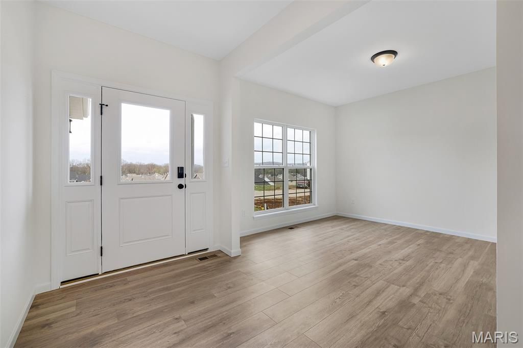 Introducing the brand-new Nottingham 2-story home by McBride Homes! With 4BR and 2.5BA, this home is ready now! Featuring 3-car garage, 9' ceilings, 6' windows, & upgraded wood laminate flooring throughout the main level. The kitchen is a showstopper w/quartz countertops, 42 Winstead Burlap cabinets, island with breakfast bar, & stainless steel GE appliances. Perfect for relaxing or entertaining, it also has a spacious great room w/a wall of windows, plus formal living & dining rooms off the welcoming foyer. Upstairs, the primary suite includes a walk-in closet, separate shower, & large tub, along w/3 additional bedrooms, a hall bath, & a loft. Dual zone HVAC! Extras include 2-panel white interior doors, powder room, matte black fixtures, LL 3/4 bath rough-in & more! Windswept Farms offers Rockwood Schools, Jeff Co taxes, and great onsite amenities! Enjoy peace of mind with McBride Homes' 10 year builders warranty and incredible customer service! Similar photos shown.