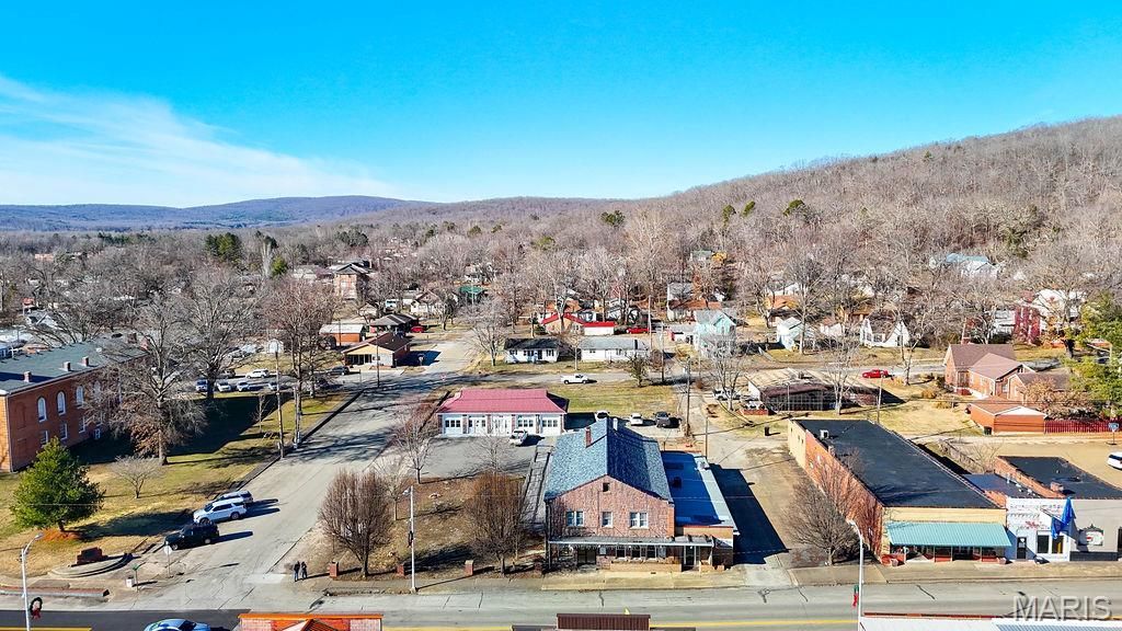 Prime commercial building located in downtown Ironton, Missouri, directly next to the courthouse. This highly visible corner location offers a front-row seat to popular Arcadia Valley events including the BBQ Battle, Mountain Music Festival, Christmas in the Valley, Pickin' on the Square, Farmers Market, and Fall Festival. Previously operated as a restaurant and bed & breakfast, the property features four B&B guest rooms accommodating up to 14 guests, with seven total bathrooms within the guest suites upstairs. A private bedroom with living quarters is also included. The building offers excellent event potential with seating for approximately 100 guests in the dining room and lounge, plus outdoor seating for up to 150 on a large deck and patio with an outdoor bar area. Additional highlights include a spacious commercial kitchen, with equipment available for purchase at an additional price. Qualified buyers only. Showings by appointment only. Agent Owned.