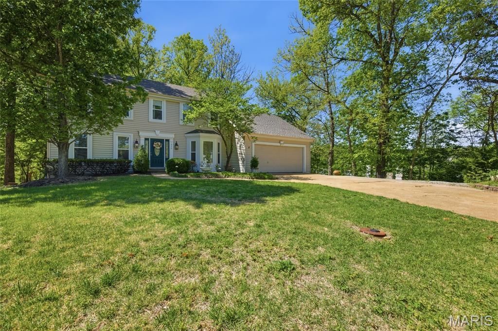 Tucked away on a cul-de-sac in sought-after Westbrooke, this 2-story colonial offers 4 bedrooms, 3 full baths and 2,871 square feet of living space backing to beautifully wooded association common ground. A spacious primary suite with a large walk-in closet and an en suite bath featuring dual vanities, a soaking tub, and walk-in shower; the layout offers both function and comfort. The eat-in kitchen features a center island, recessed lighting, suspended pot rack, and a built-in workstation nook for added flexibility. The finished lower level provides even more living space with a large recreation area, workout room, and open layout, while unfinished areas offer built-in wood shelving for excellent storage. Outside is where this home TRULY shines. The backyard is a rare retreat with towering trees, exceptional privacy, an expansive wood deck, covered seating area with ceiling fan, playground, trampoline deck, and a charming free-standing clubhouse with it's own siding and shingled roof. The lot backs to association-owned common ground, and overlooks a valley. There is also additional storage and a workshop space beneath the deck with exterior access through sliding glass doors. An insulated, drywalled, and painted 2-car front-entry garage adds even more value, and the new roof installed in 2025 offers peace of mind. Conveniently located in Parkway School District near Wren Hollow Elementary, Parkway South High School, Manchester Road and Highway 141; this is a home that offers space, character, and an incredible setting.