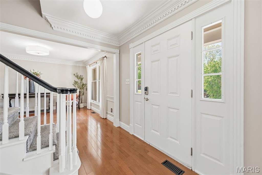 Open House Sunday 5/3 1-3 PM!! Welcome to this beautifully maintained 2 story home in the highly sought after Rockwood School District, offering 4 bedrooms, 2.5 baths, and a spacious layout designed for both everyday living and entertaining. Gleaming hardwood floors span the main level, complemented by beautiful dental molding in the living room, dining room, and welcoming foyer. The open foyer offers generous walk-through space and sets the tone for the home's thoughtful flow. Open yet featuring defined living areas.The inviting family room features built-ins, a charming bay window, and a cozy ventless gas fireplace, creating the perfect gathering space. The kitchen offers stainless steel appliances, a convenient breakfast bar, and easy access to the main floor laundry with custom organization. All four bedrooms are located on the upper level, including the primary suite with a private full bath and walk-in closet, while the remaining spacious bedrooms share a second full bath featuring a skylight window. The partially finished basement offers additional flexible living space and storage, making this spacious yet comfortably sized home the perfect blend of functionality, charm, and comfort.Step outside to the lovely screened in porch, an incredibly relaxing and private space ideal for enjoying morning coffee or unwinding while listening to the birds. The beautifully landscaped lot enhances the home's curb appeal and outdoor enjoyment, while the expanded parking pad provides additional convenience and access to the rear entry 2 car garage.Numerous recent improvements provide peace of mind, including a newer hot water heater, full exterior painting (home, stair railing, and mailbox), newer garage door, gutters with gutter guards, newer front door with updated hinges and hardware, newer vinyl exterior shutters, French drains with PVC piping, replaced backyard storm drain, and enhanced front landscaping with decorative stone walls, sod, trees, and bushes.Conveniently located near shopping, dining, and entertainment, this home offers the ideal combination of comfort, updates, and everyday convenience. Welcome home!