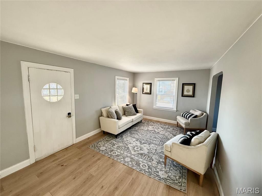 This is a beautifully remodeled 2-bedroom home tucked away on a quiet cul-de-sac in Overland. Pulling up you will notice the charm this home offers, with the inviting steps leading to the covered front porch. This home features a spacious sun-filled living room that flows seamlessly into the dining room, creating an open floor plan perfect for entertaining. Enjoy brand-new luxury vinyl plank flooring throughout. The renovated kitchen offers new cabinetry, Quartz countertops, with all newer appliances, ample workspace, and easy access to both the dining room and the backyard. Both bedrooms are generously sized, filled with natural light, and include great closet space. The basement is semi-finished, just waiting for your final touches to complete the space. Step outside to a fully fenced backyard - ideal for outdoor entertaining. Additional highlights include a new roof, an attached 1 car garage, providing off-street parking convenience. This a prime location close to highways, restaurants, shopping and so much more.