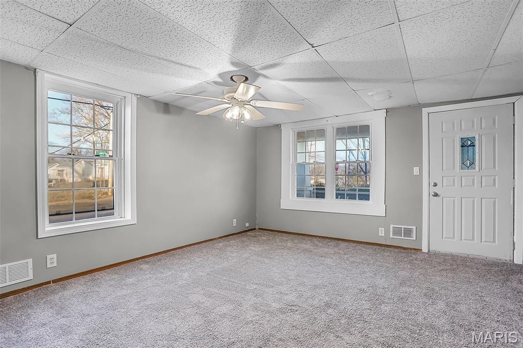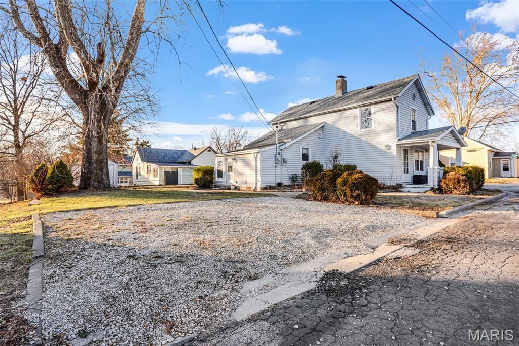 This charming bungalow-style home sits on a corner lot just steps from downtown. Featuring 3 bedrooms and 2 baths, the home welcomes you from a covered front porch into a sunny living room with a coat closet and newer carpeting. The main floor includes a bedroom with an arched opening to a 3/4 bath ensuite. The spacious kitchen provides ample cabinetry, two additional prep areas with butcher block counters, and a small pantry. A convenient laundry space and drop zone connect the kitchen to the side exterior entrance. Upstairs, you'll find two additional bedrooms and a full bath. The exterior offers a spacious yard with a large shade tree, a Tough Shed for lawn and hobby equipment, and ample designated rocked parking. Enjoy an unbeatable walkable location near the Wood Nickel, Miner Park, the library, and popular community events like Glenfest; an excellent chance to invest in one of Glen Carbon's most desirable areas. Home is being sold as is.