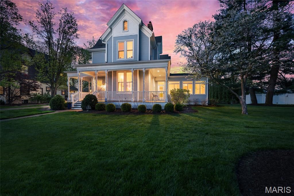 Timeless 1875 Victorian just steps from Downtown Kirkwood offering over 7,000 sq ft of total living space (6,200+ above grade). This beautifully updated home blends historic elegance with modern functionality and is anchored by 5 fireplaces, soaring ceilings, and original architectural detail throughout.A gracious wraparound covered front porch welcomes you into expansive, light-filled living spaces designed for both everyday living and entertaining. The heart of the home is a spacious gourmet kitchen with generous prep and gathering areas, opening to inviting living spaces and a formal dining room ideal for hosting. A standout feature is the sunroom with indoor kitchen, seamlessly connecting to a large deck, patio and private, tree-lined backyard-perfect for indoor/outdoor living.The home offers 6 bedrooms and 8 bathrooms, including a luxurious primary suite with spa bath, soaking tub, separate shower, oversized walk-in closet with private laundry, and a see-through fireplace shared between the bedroom and bath. Three additional bedrooms feature en-suite baths, a 4th & 5th bedroom and a lovely full hall bath, providing flexibility for family, guests, or office use.The finished lower level expands living space with a family/game area and a separate exercise or craft room. Additional highlights include a 4-car garage, new main-level laundry, whole house generator, basketball court, multiple gathering spaces, and many upgrades ( see attached list)Situated in one of Kirkwood's most desirable locations, this home is just moments from shops, restaurants, the Kirkwood Farmer's Market, Library, and the Kirkwood Performing Arts Center, offering a rare combination of historic character, modern amenities, and walkable convenience!