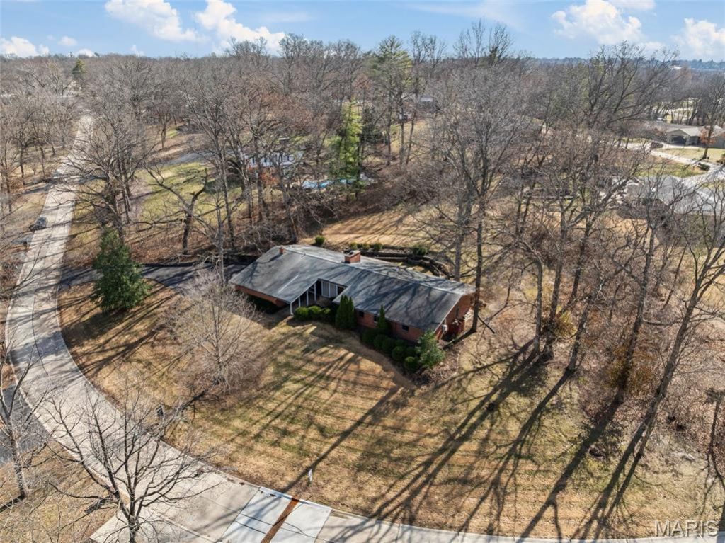 28 Black Oak is not your typical Mid Century ranch in Sunset Hills. This is a statement house set on 1.36 acres.With over 2,700 square feet, the home is centered around a dramatic main living space defined by walls of 10-foot-tall solid glass stretching across both the front and back. Light floods the room from every angle. Feeling architectural and almost gallery-like. A floor-to-ceiling brick fireplace stands boldly in the center, dividing the living and dining areas without closing off the space. The layout of the home further unfolds in two distinct wings. The kitchen, complete with an eat-in breakfast area, half bath, and adjacent laundry room, remains a true time capsule, ready for someone with vision to either preserve its charm or reimagine it entirely.On the opposite side of the home, the private wing includes a spacious primary suite with a large walk-in closet and ensuite bath, along with four additional bedrooms. One offers flexibility as a secondary living room, studio, or family space depending on your needs. The footprint is generous. The possibilities are wide open.With this massive lot at the back of the subdivision, the home sits elevated atop a hill, creating a quiet, almost estate-like presence. Mature trees surround the property, offering privacy and a sense of retreat rarely found in established neighborhoods. The lot alone is something special.This is one of the only original-owner homes in the neighborhood, a rare opportunity to acquire a property that has never changed hands. It has been lovingly maintained, but it is dated and being sold as-is.For the buyer who sees potential instead of projects. For the one who appreciates strong bones, dramatic lines, and light that can't be duplicated... 28 Black Oak is ready for its next chapter.
