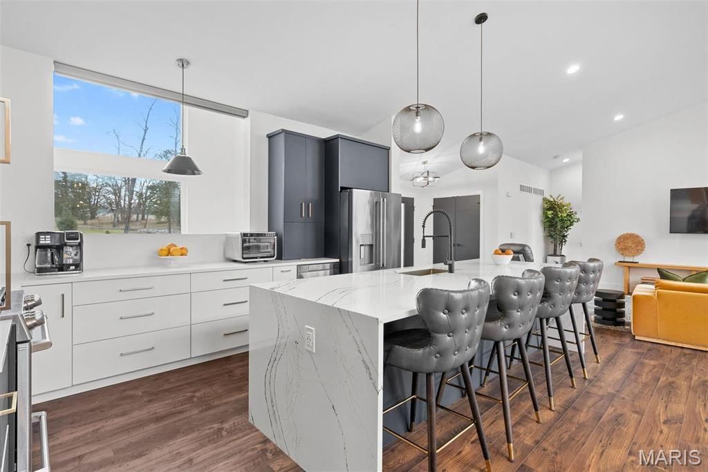 Breathtaking, 3166 sqft custom & modern retreat on 3.9 private acres with NO Restrictions or HOA. Just 4 yrs old & located by Lake Sherwood. Appraised 6 months ago for $855,000! This 4bd, 3bth Ranch fuses contemporary design w/nature. (easy to make a 5th legal bdrm). The property would make for an excellent Weekend Retreat or Air B-n-B. 15mins from Wentzville, Busch Family Farm, Daniel Boone's Home. Enjoy biking on the Katy Trail & picturesque view at great wineries like Chandler Hill, Balducci, Defiance Ridge Vineyards & many more~its Wine Country! Located just 45mins from Lambert International Airport. An impressive 67 windows flood the space w/ electronic shades & w/ natural light, while soaring 17ft ceilings amplify the open, airy ambiance. A striking 3-sided gas fireplace adds warmth & elegance. Gourmet kitchen boasts GE Cafe appliances, waterfall-edge quartz island, pot filler, walk-in pantry & appliance garages. Designed for both style & comfort, it features Mohawk floors, 5-in baseboards, soft-close doors & custom built-ins. Luxury Primary Suite w/spa-like bath w/freestanding tub & custom tile shower,16ft drapery. Entertain in the walk-out LL FamRm w/wet bar & step onto the expansive patio & deck w/a sunset awning. Plus, Hardie fiber cement siding, Plygem windows, 3-zone HVAC, 3-car garage, plus 35x18 extra garage &an irrigation system. Water Softener & Triple Filtration Water System Cuivre River Electric Gateway Hi-Speed Internet=Super Low Utilities.
